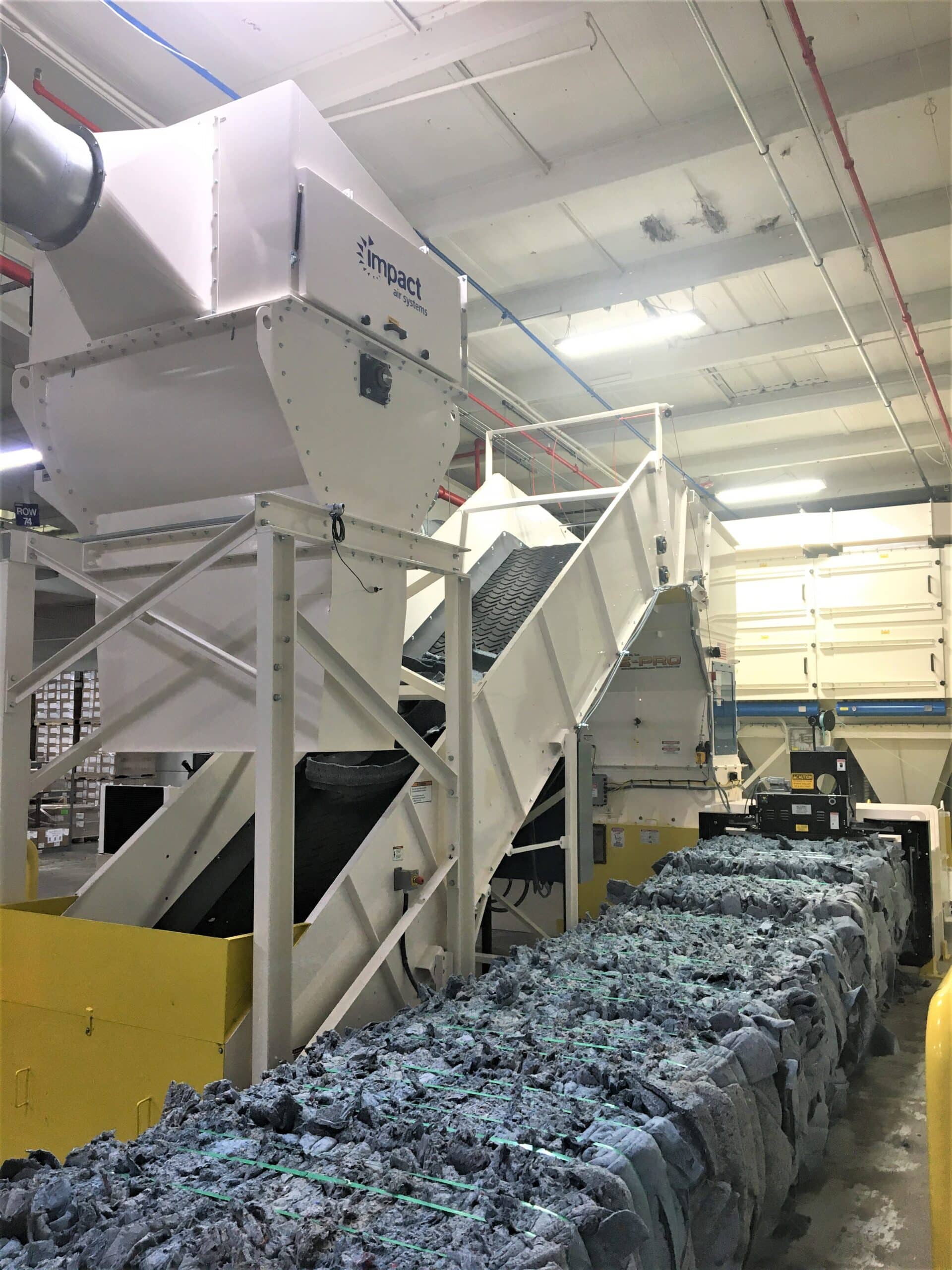 • Waste is transported via a precision-engineered ductwork extraction system to an Impact rotary separator, which discharges onto an incline belt conveyor feeding a twin-ram hydraulic baler.