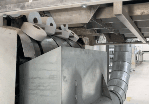 Heavy duty chopper fans provide the conveying airflow for the waste extraction circuit as well as breaking up any large pieces of material as they pass through the fan. Acoustic fan enclosures were included as part of our recommendation to reduce break out noise levels during operation.