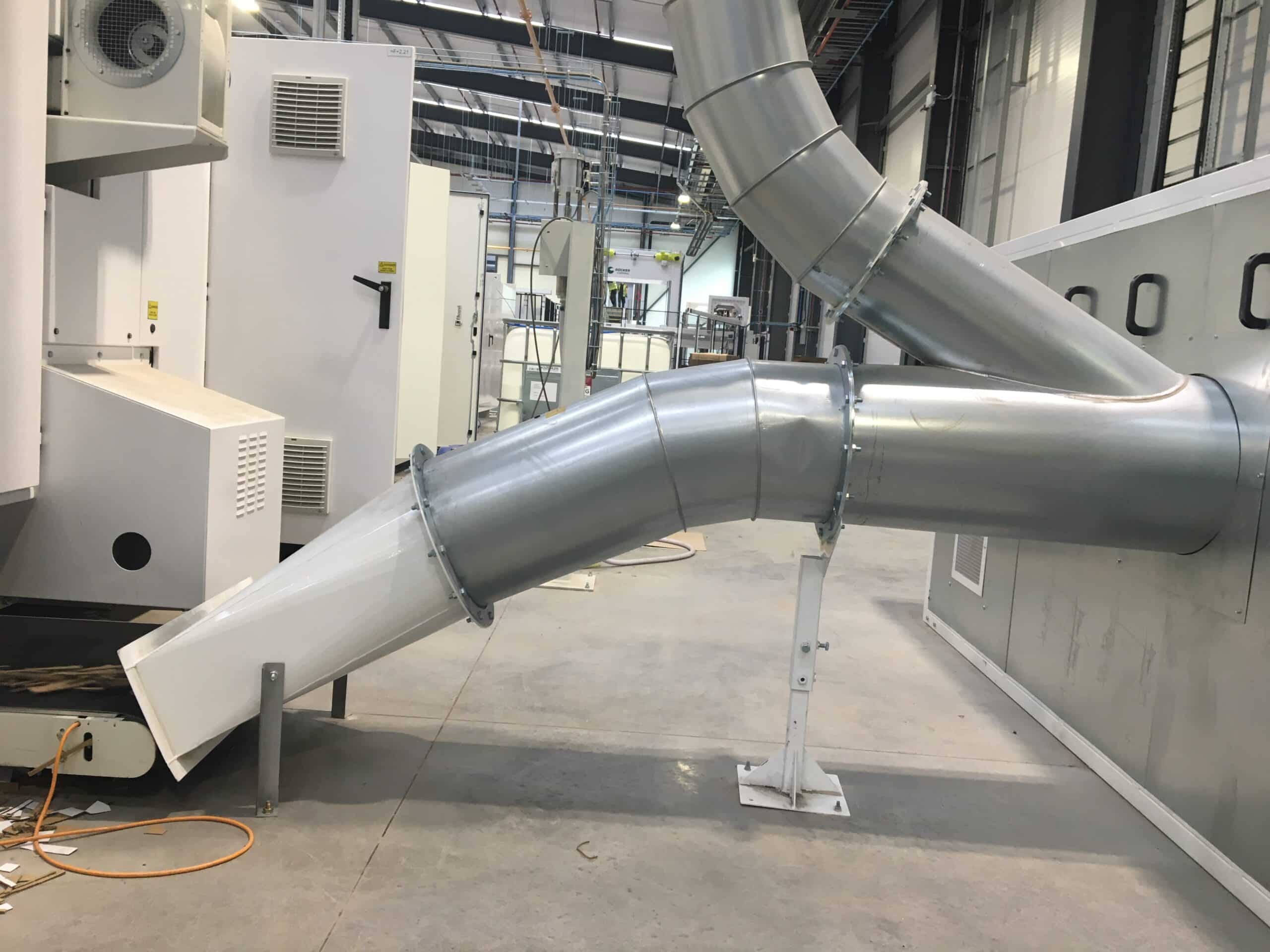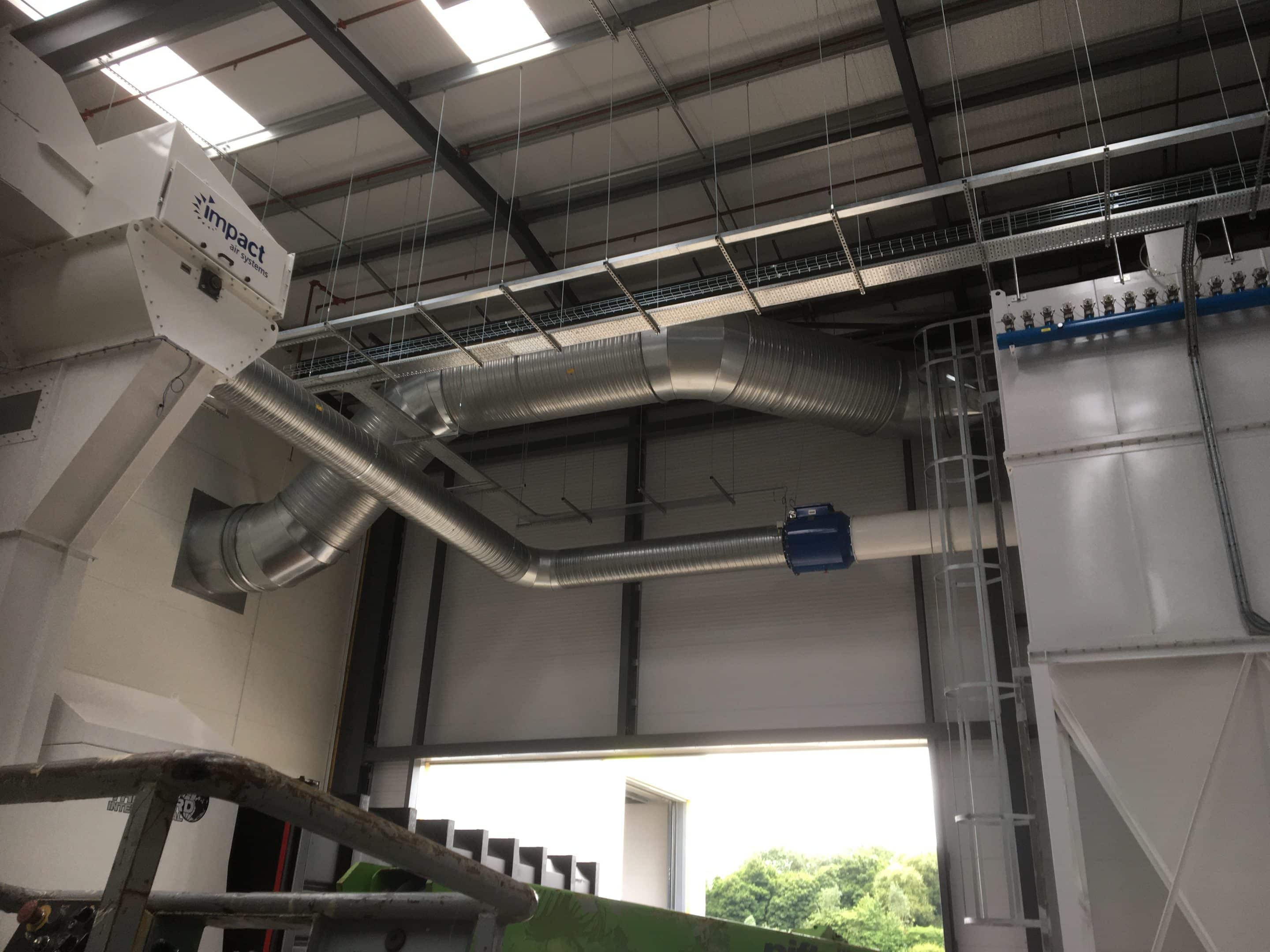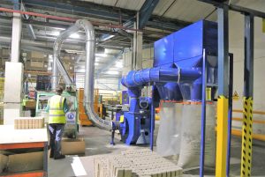 The dust extraction system is split into two dedicated circuits. One that collects the airborne dust from the waste extraction, and the second that handles the dust created during the manufacturing process on the production line.