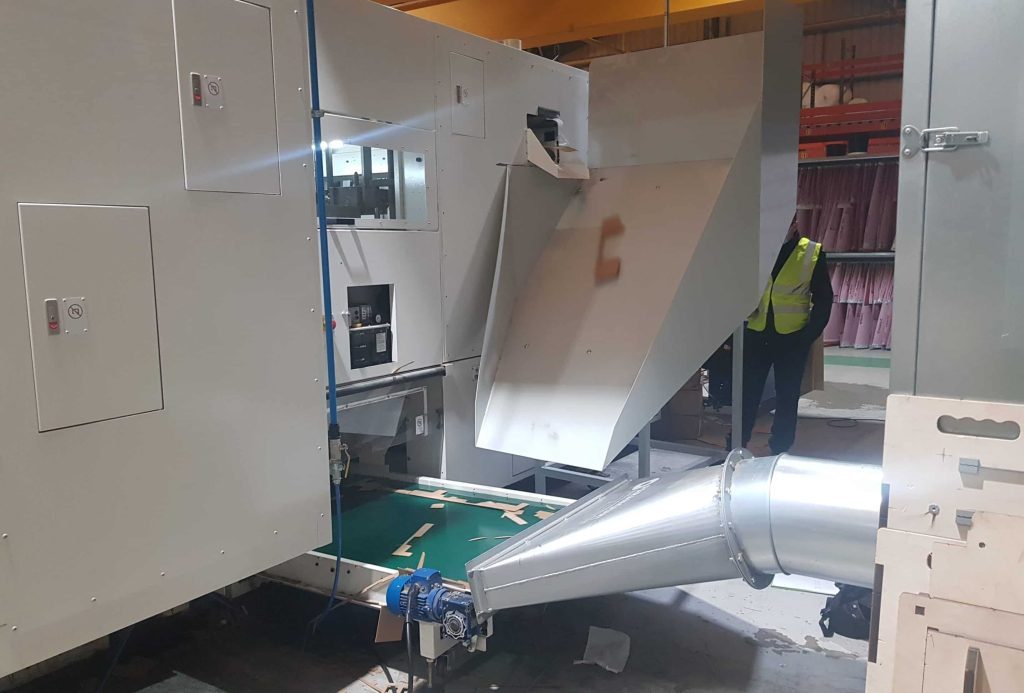 By removing the board trim and off-cuts from the production process, along with the dust that is also produced, downtime is kept to an absolute minimum, increasing productivity and improving the quality of the product.
