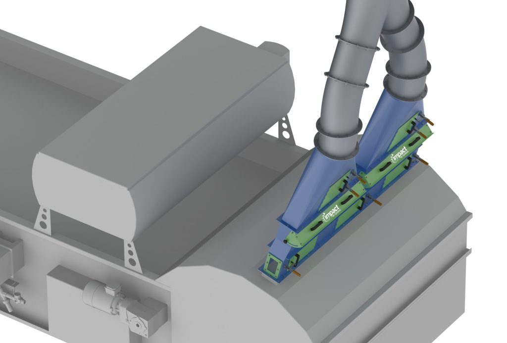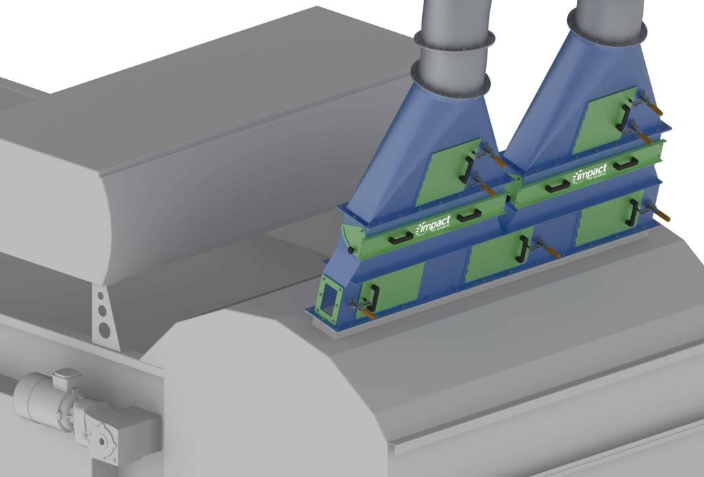 Impact’s Plastic Film Airlift is an innovative solution designed to work in conjunction with optical sorters to capture film that has been rejected from the material stream by the optical sorter air injection (see 3D diagram in gallery below).