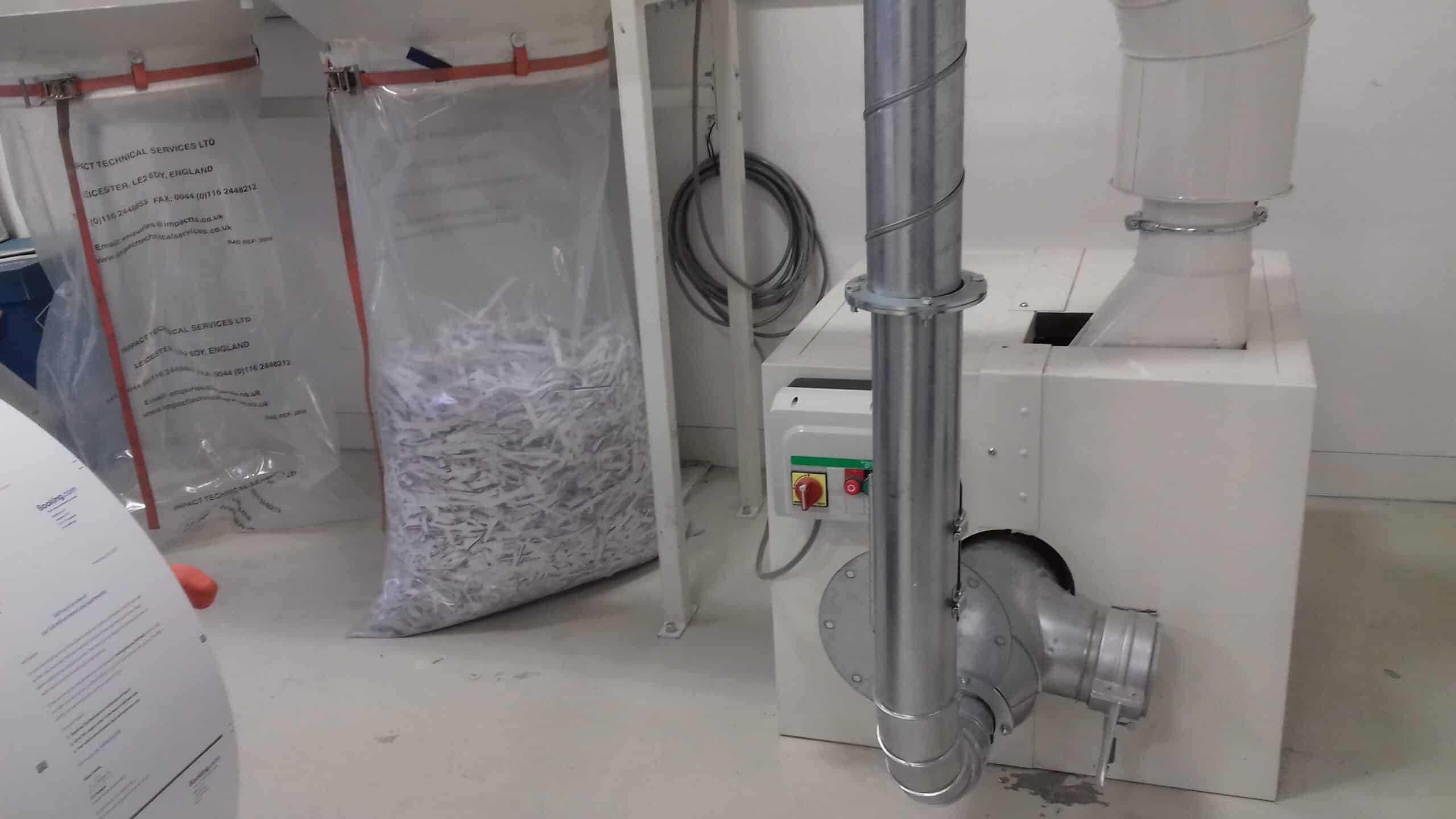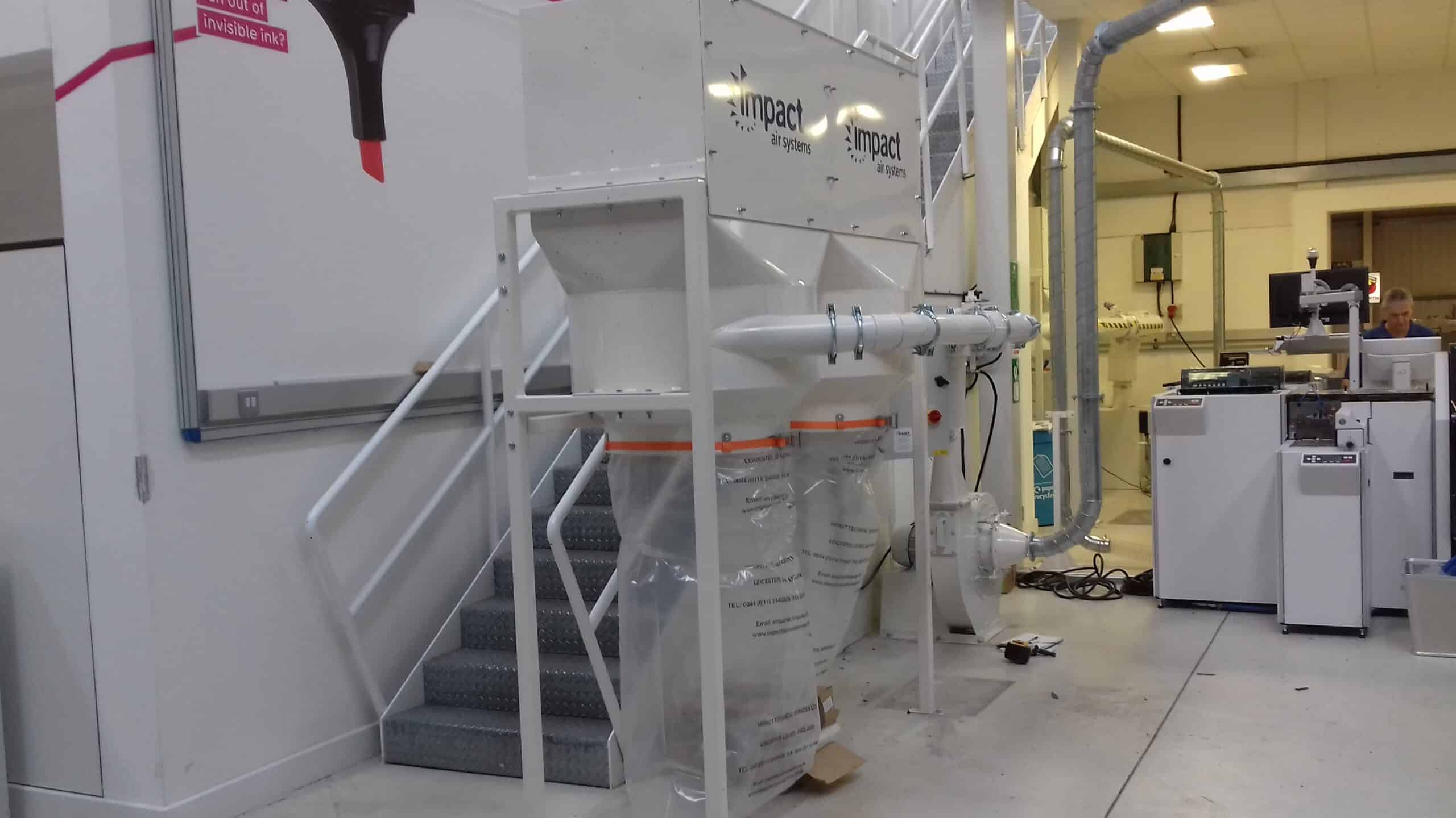 To manage the trim waste from the Hunkler digital print finisher the Impact Trim Master TM180 bagging unit was installed and a Trim Master TM80 twin bagging unit to collect from the Bowe Systec finishing lines, both at their Sheffield facility. This cost effective, flexible, trim and dust extraction unit seamlessly collects waste material from