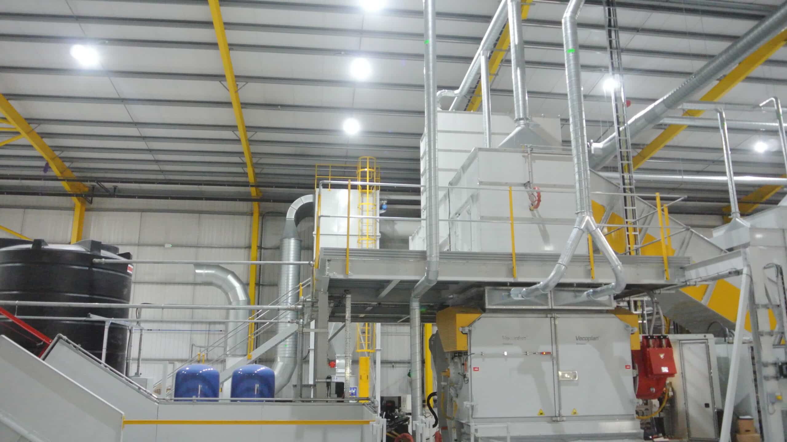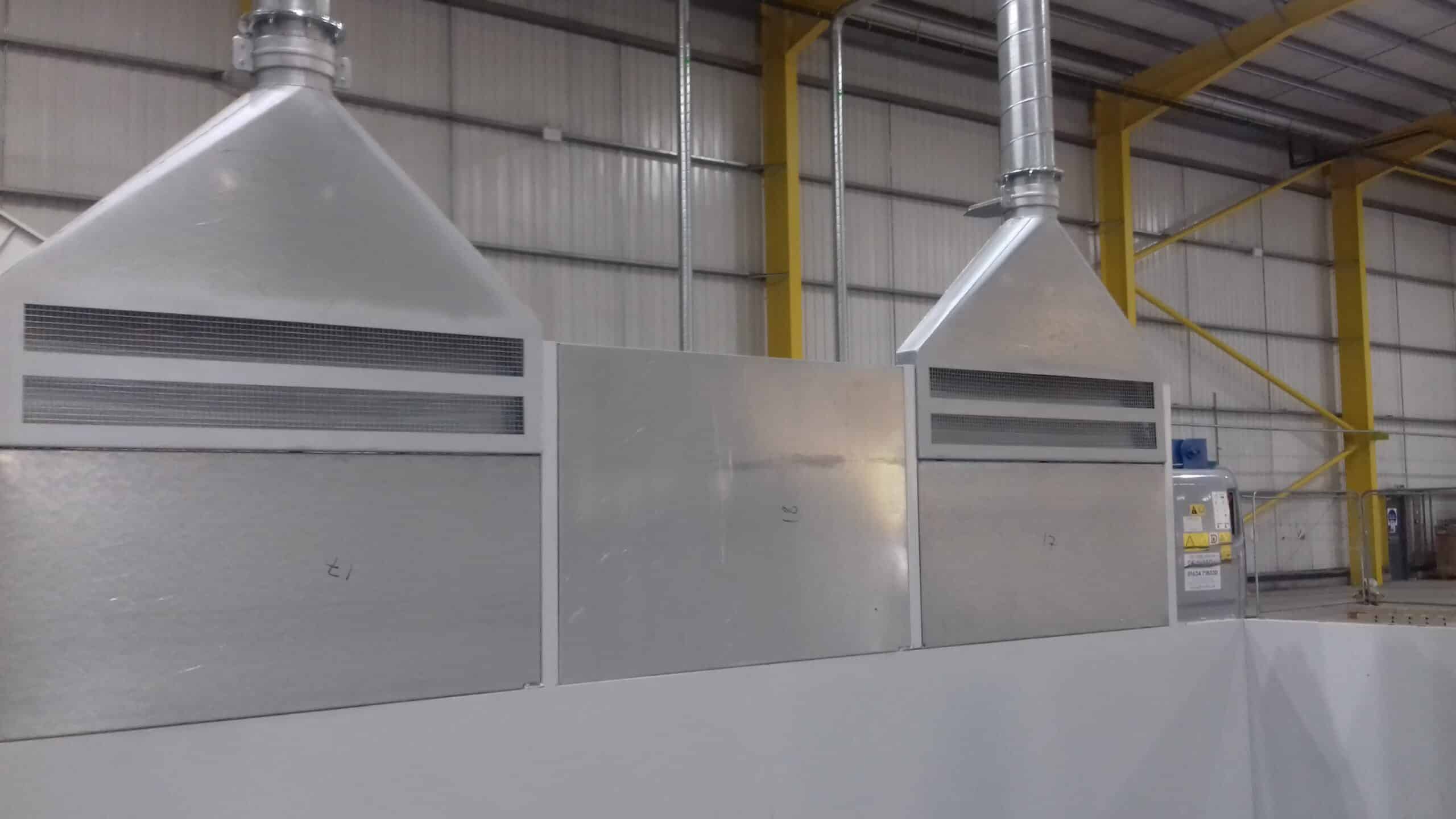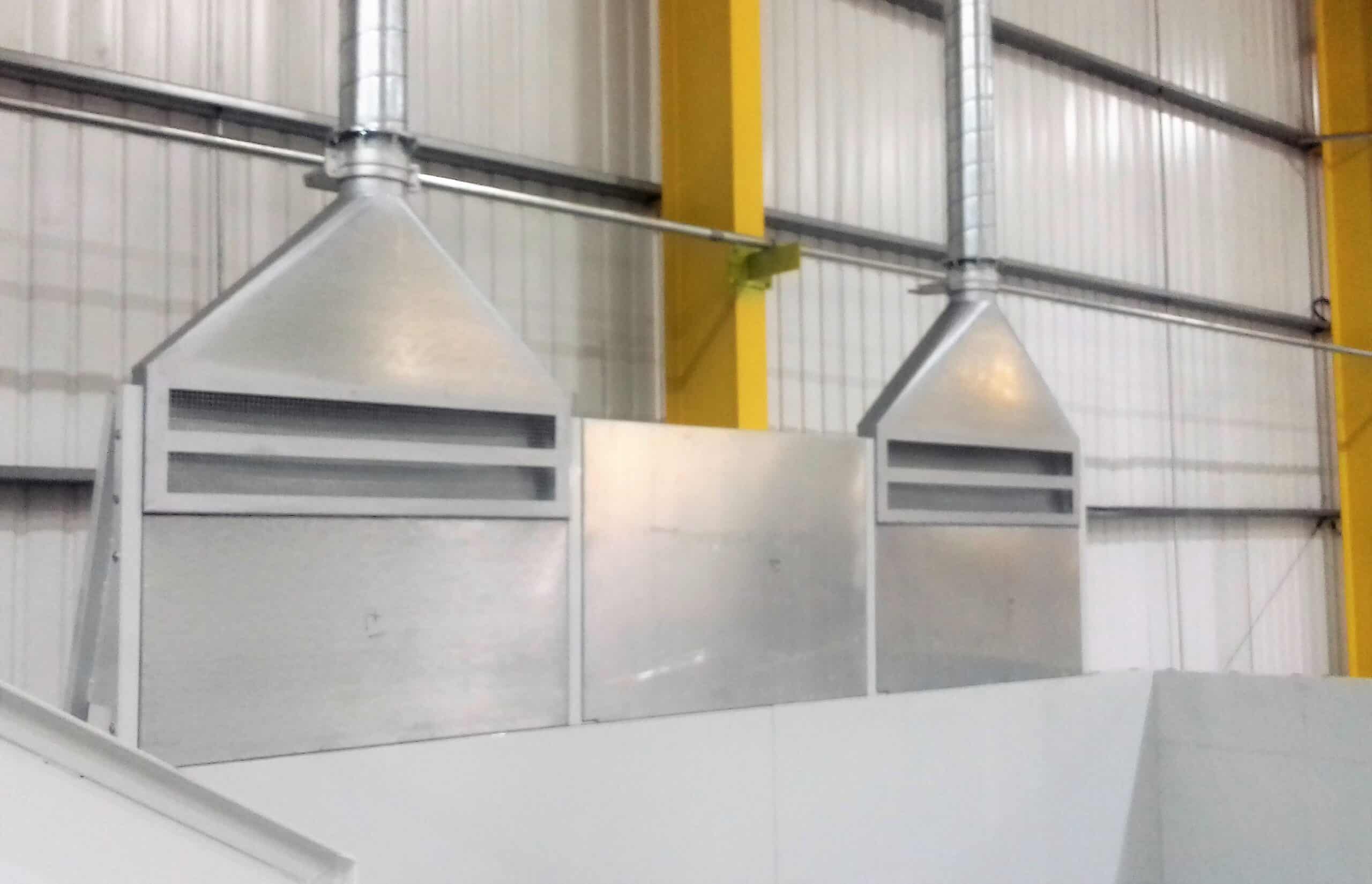 Having passed through the dust filtration plant, the extracted air volume can either be discharged to atmosphere, providing ventilation in the summer, or returned back into the process area to retain heat during the winter.