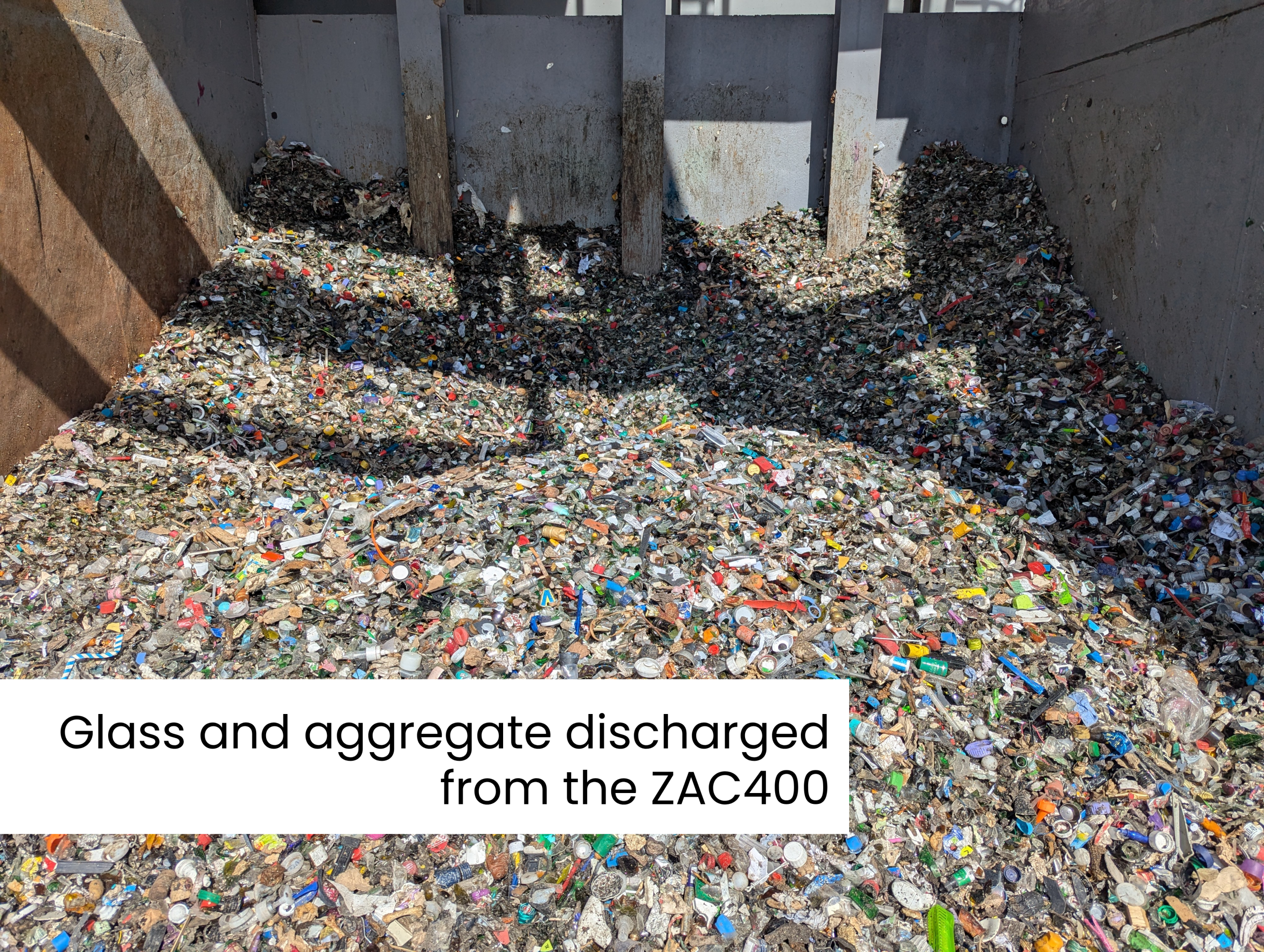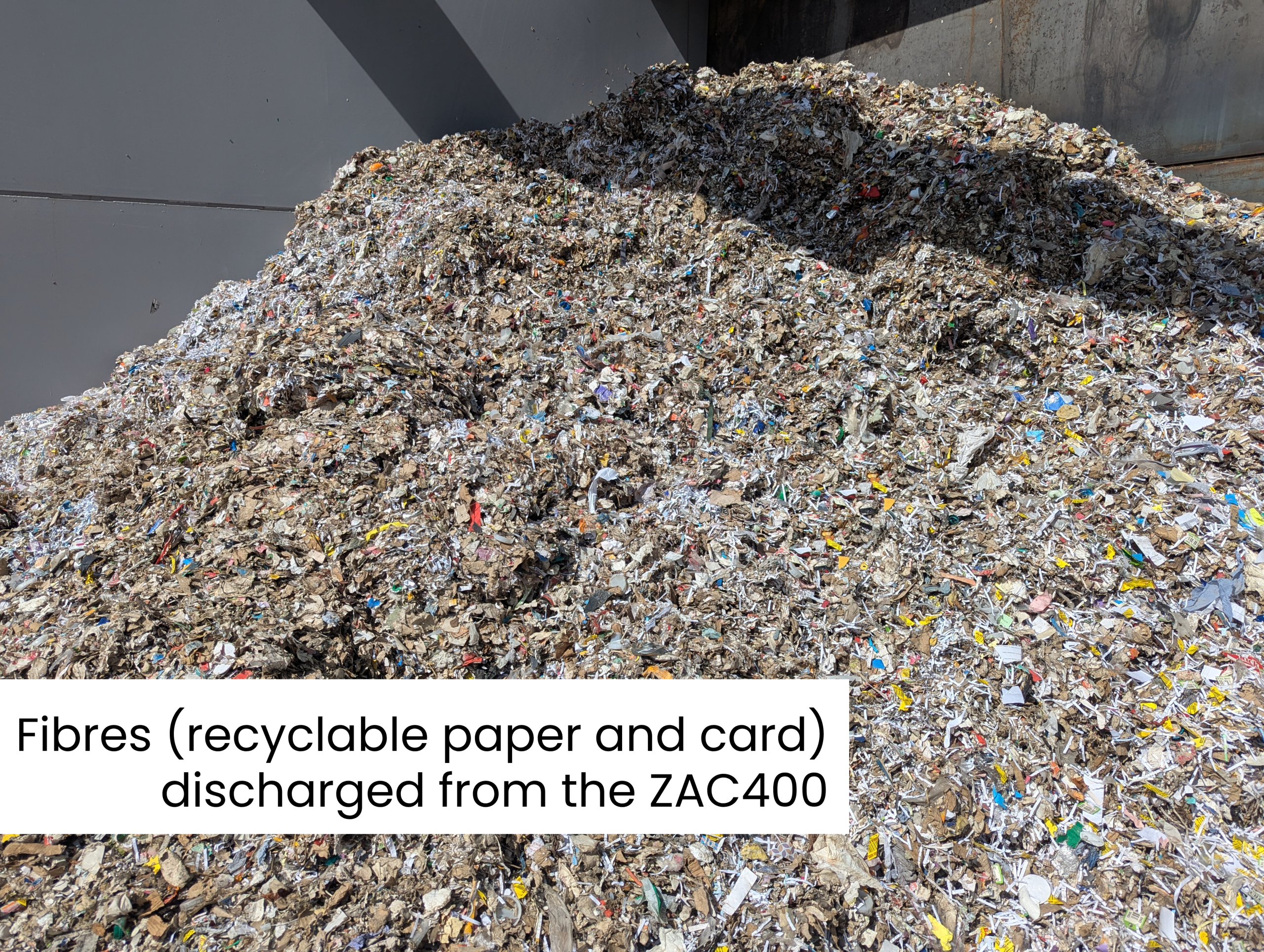At this site, the ZAC400 is used to separate the glass and aggregate from the remaining recyclable fibres—like small pieces of paper and card—from the residue stream. This helps reduce landfill waste and allows more material to be recycled or turned into Solid Recovered Fuel (SRF).