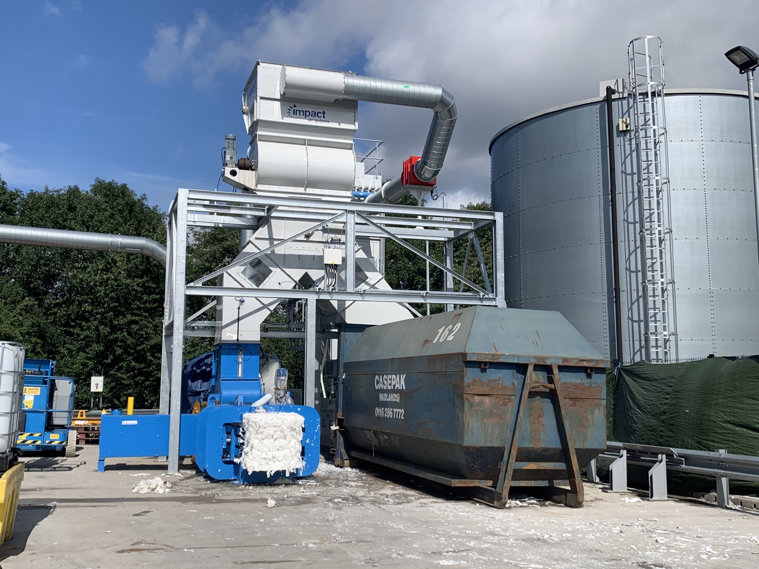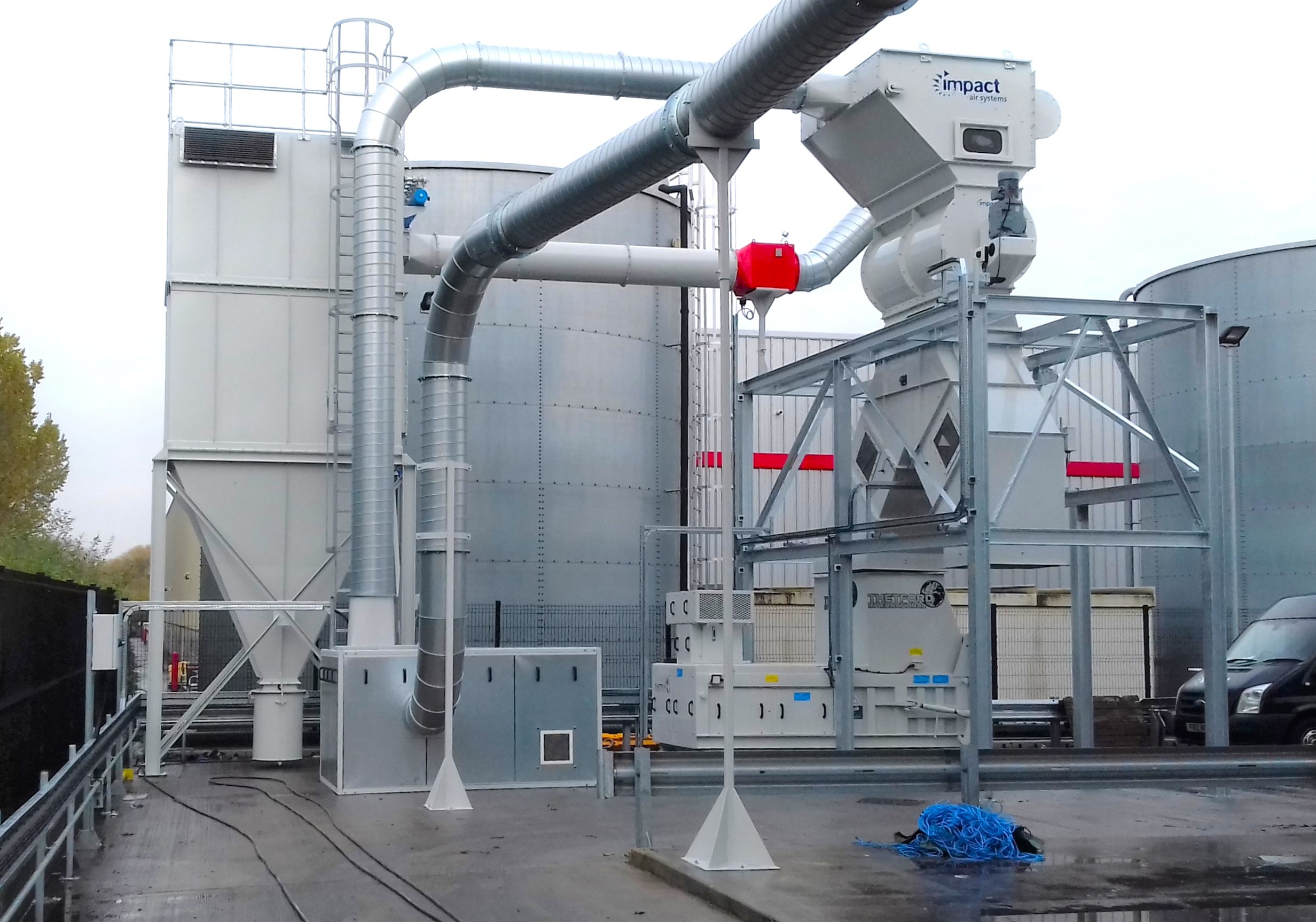 Here we remove the nubbins/cookies off cuts from the toilet roll and kitchen roll manufacturing process and pneumatically convey them to an external baler or compactor for recycling.