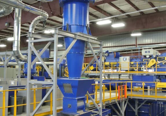 The separator’s main function is to separate the waste material from the conveying air stream. The separator assembly consists of a perforated screen plate, inclined downwards at an angle inside metal housing.