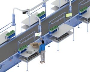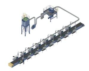 Systems can be designed to collect material from multiple workstations simultaneously and transport it long distances to a convenient point, even move the waste to the outside of the building. Each system can be built bespoke to each packing/unpacking scenario depending on the number of workstations, material quantity and space within the facility.